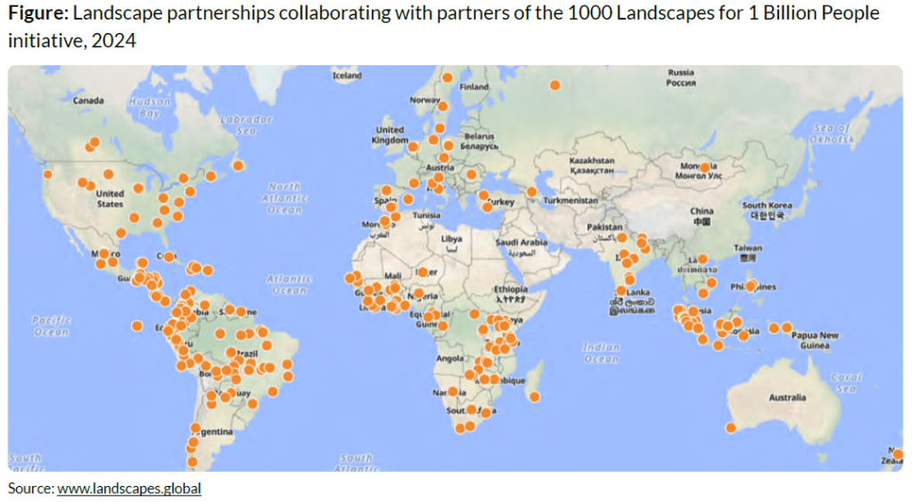 Promover paisagens integradas gera altos retornos: uma economia próspera, bem-estar humano, natureza saudável e inspiração coletiva. Estratégias integradas de paisagem vêm sendo promovidas globalmente por agências das Nações Unidas e convenções ambientais para impulsionar o crescimento econômico sustentável, os Objetivos de Desenvolvimento Sustentável (ODS) e as Contribuições Nacionalmente Determinadas (CNDs) para a ação climática. Países ao redor do mundo — de Costa Rica ao Reino Unido — estão liderando iniciativas nacionais para enfrentar a policrise em suas causas profundas. Conduzidas nos mais altos níveis de governo, essas iniciativas oferecem apoio institucional a parcerias locais que representam todos os setores e grupos sociais, para desenvolver estratégias e planos de ação integrados de paisagem voltados para o desenvolvimento sustentável.