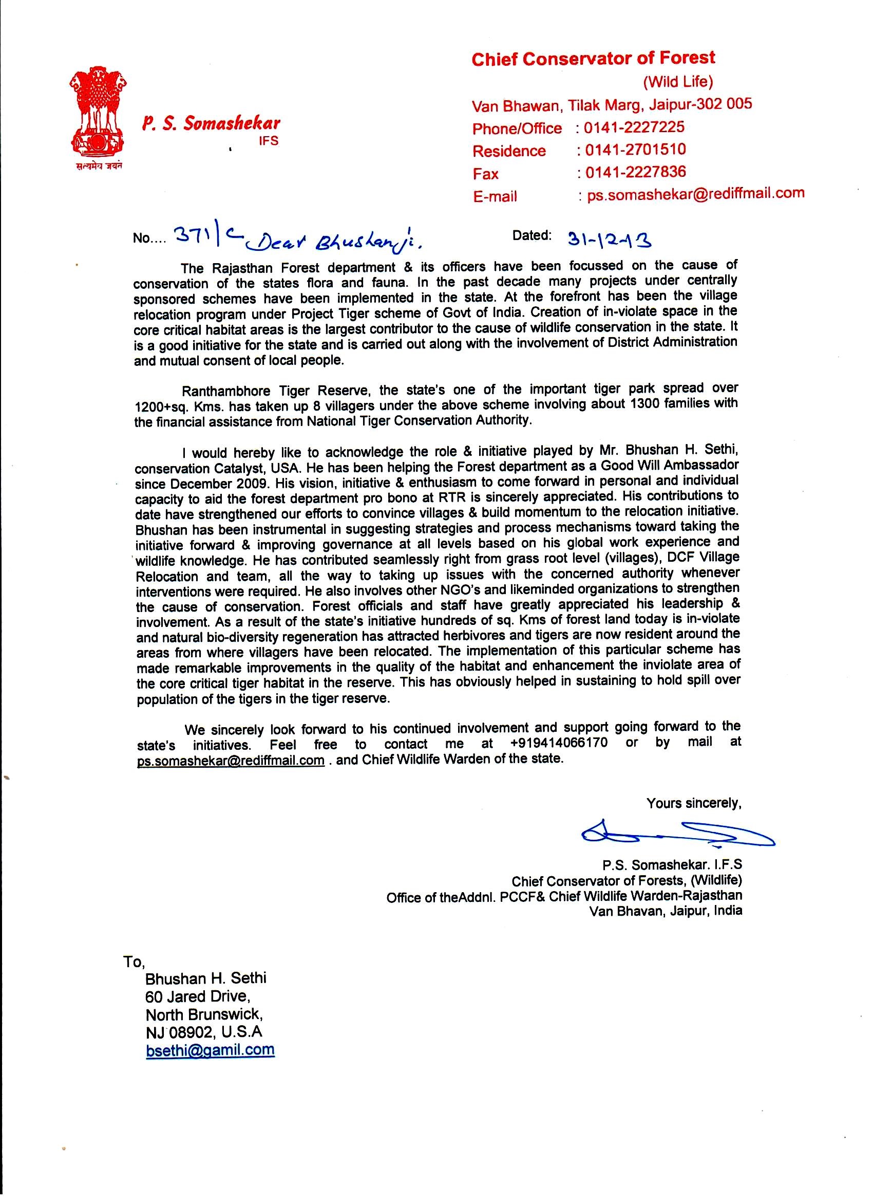 - ↓ March 2013 to Chief Wildlife Warden Rajasthan,